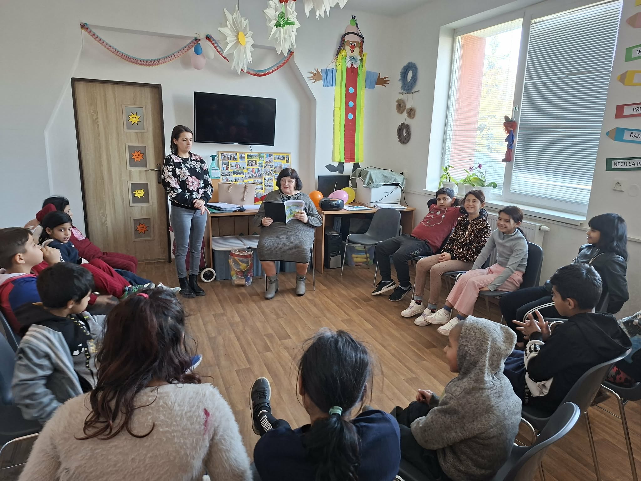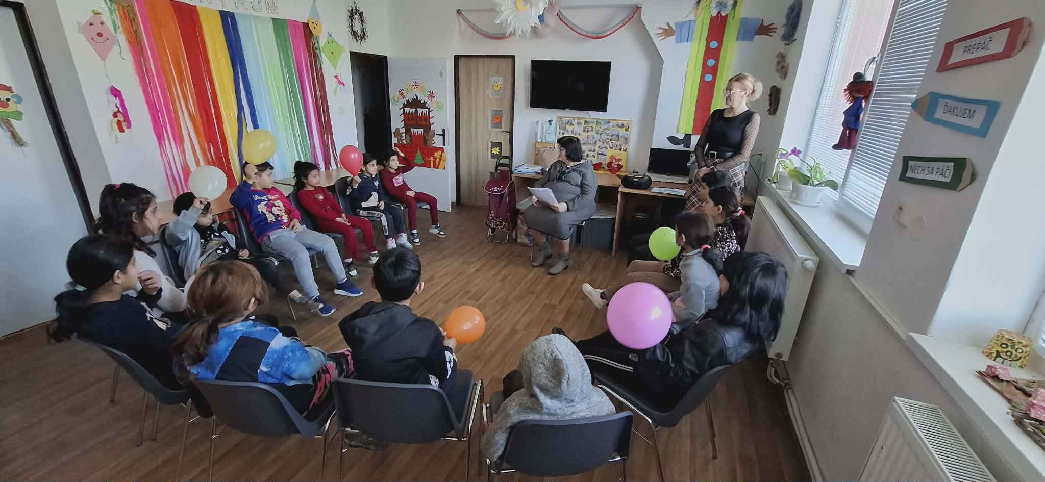 Tak ako každý mesiac aj tento nás opäť navštívila pani spisovateľka PaedDr. Oľga Švedová a priniesla deťom nezabudnuteľné chvíle plné radosti a smiechu. Pre deti si vybrala báseň s názvom Balóniky. Najprv deťom vysvetlila, čo je verš a sloha, aby vedeli, ako sa básne skladajú. Potom im prečítala svoju báseň, ktorá mala krásny odkaz: nech sú všetky deti šťastné, žijú v mieri a nech na všetky svieti slnko. Deti sa zapojili do čítania a potom prišla tá najveselšia časť – každý mal skutočný balónik! Spoločne s pani spisovateľkou nacvičili veselú pesničku a potom tancovali medzi farebnými balónikmi.