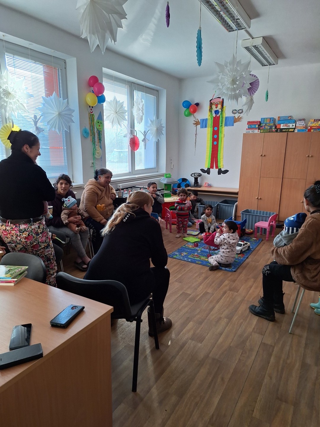Po dlhej dobe, keď sme nemohli robiť skupinové aktivity kvôli žltačke, sa naše ženy na toto stretnutie veľmi tešili. Klubu sa zúčastnilo 11 mamičiek a 20 detí od 0 do 6 rokov. S deťmi sme cvičili hrubú a jemnú motoriku, spoznávali domáce zvieratká a to všetko formou hry spolu s mamičkami. Strávili sme krásne dopoludnie.