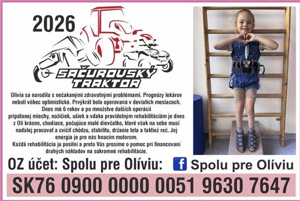 Ešte raz Vám veľmi pekne ďakujeme!!! za Vašu podporu a verím, že o rok sa vidíme na Sačurovskom traktore, na ktorý sme si vybrali pomoc pre Olíviu, ktorá to naozaj potrebuje.